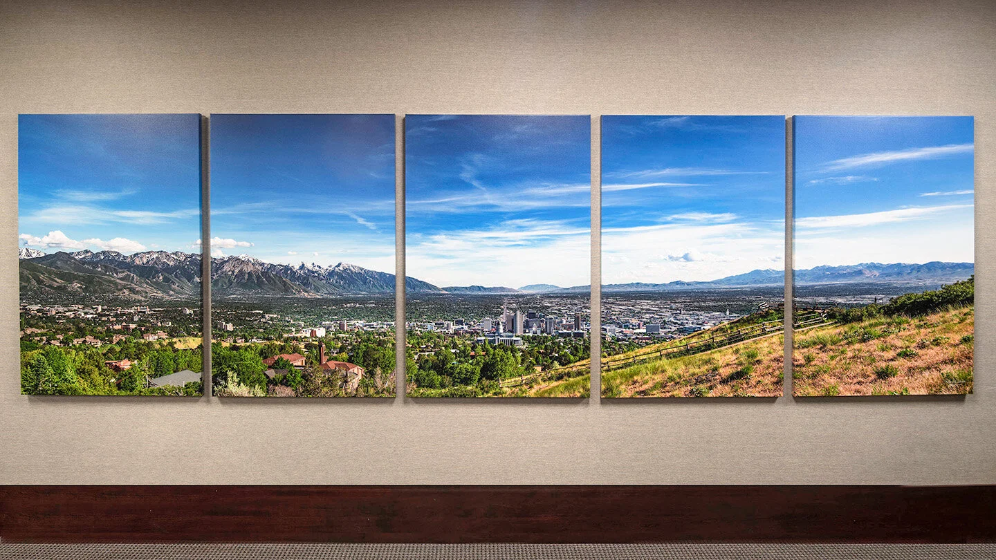 190 x 54 Multi Panel Gallery Wrap hanging in a federal facility in Salt Lake City